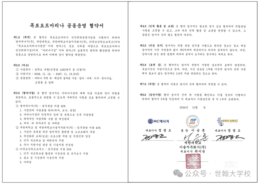Our university signed a joint operation agreement with Mokpo Yacht Marina