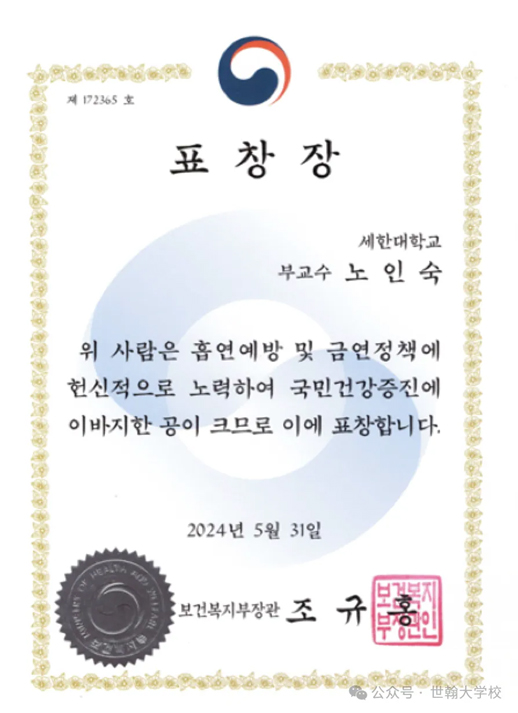 On the 37th World No Tobacco Day in 2024, Professor Lu Renshu (photo) of our university, director of the Institute of Mental Health (Dementia), won the Ministerial Award for Health and Welfare.